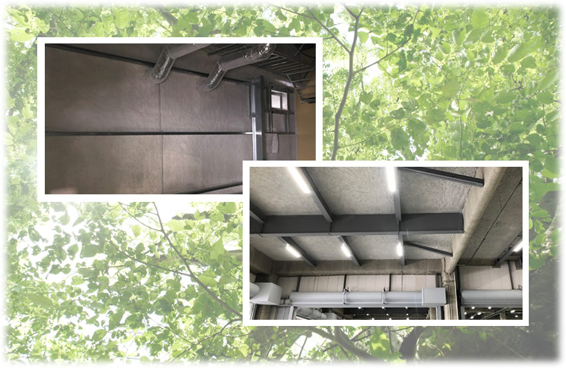 ASTM E 859-93に従って試験を実施しました。送風機は、風速計を用いて試験体表面付近における風速が6m/sになるように調整し、試験前後の発塵採取用フィルターの質量差で発塵量を確認しました。試験結果より、表面硬化処理の標準塗布量である塗布量750g/m²でも吹付けロックウールのスラリー掛けと同等程度の発塵量であることを確認しました。